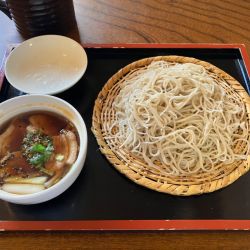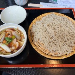 細めのそばは少し茹で足りないような粉っぽい苦手な風味。